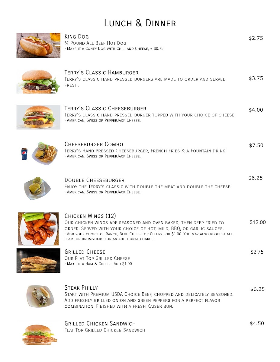 The menu showcases classic favorites like their renowned bologna sandwich and mouthwatering burgers that have garnered rave reviews from locals and travelers alike. Patrons often note the friendly staff and exceptional service, which complement the delectable food offerings. Many visitors, like Trevor Payne, return time and again, drawn by the incredibly low prices and vibrant ambiance. Whether enjoying an ice-cold beer with friends or a casual lunch with family, Terry's Tavern leaves guests craving more. Don't judge this tavern by its cover—discover the delightful culinary experience waiting inside!